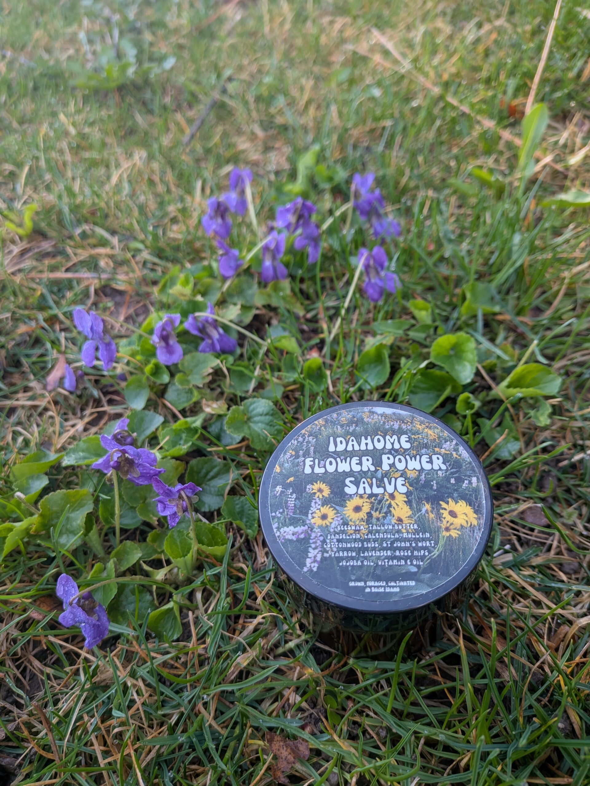 All the flowers used are cultivated by me in my small batch garden, or foraged in Boise, Idaho. Beeswax is harvested from my own bees in Boise, Idaho. Tallow butter crafted by me from local, regenerative beef fat. Essential oils are from Eden’s Garden.