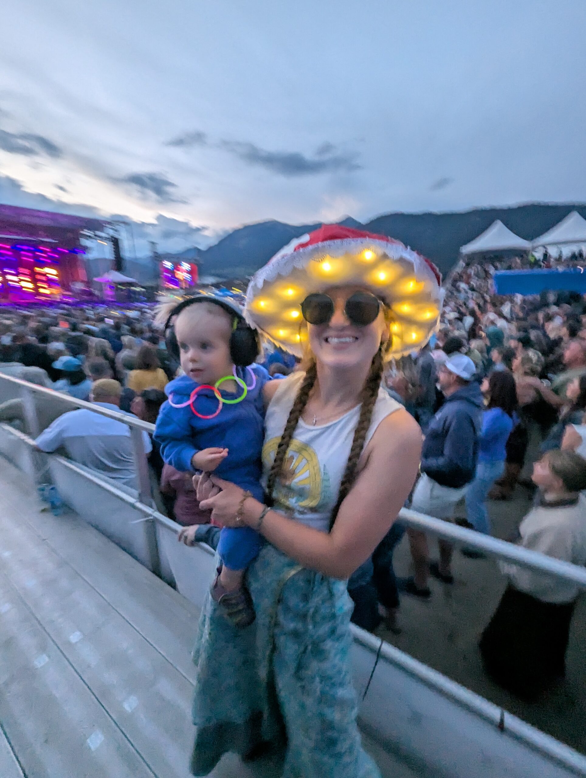 I’ve worn it for hours in the middle of summer, and trust me when I say… you can dance your heart out with it on! Better yet, you have a navigation tool for when you’re in a big crowd…I wore this when I was wearing my baby around at shows. The most fun part is how many smiles you’ll get – which is the whole point. <3